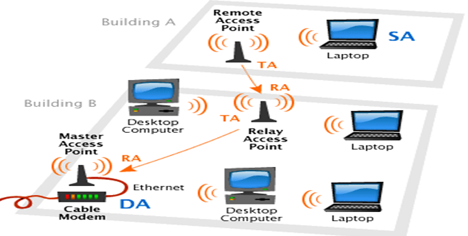 Komunikasi antar client anggota jaringan dalam topologi ini di jembatani oleh alat yang bernama access point.